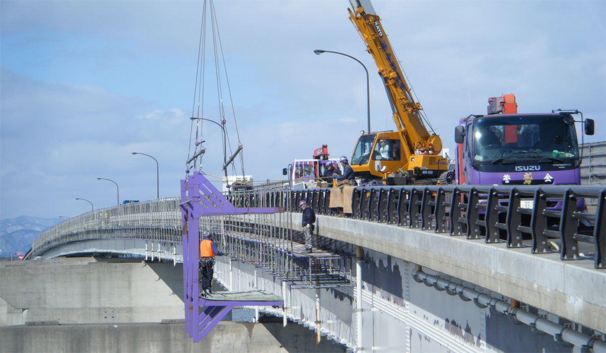 きみまち大橋緊急補修工事吊足場工事