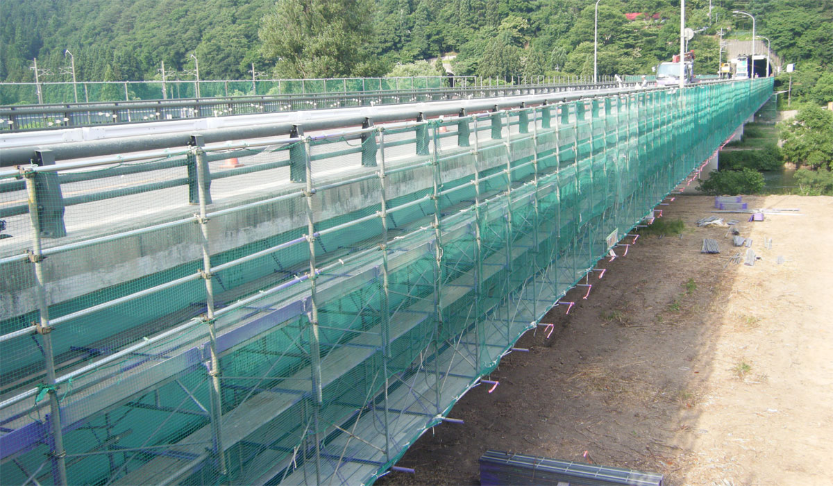 国道道路補修工事 FB12-20 新牛滝橋上部吊足場工事